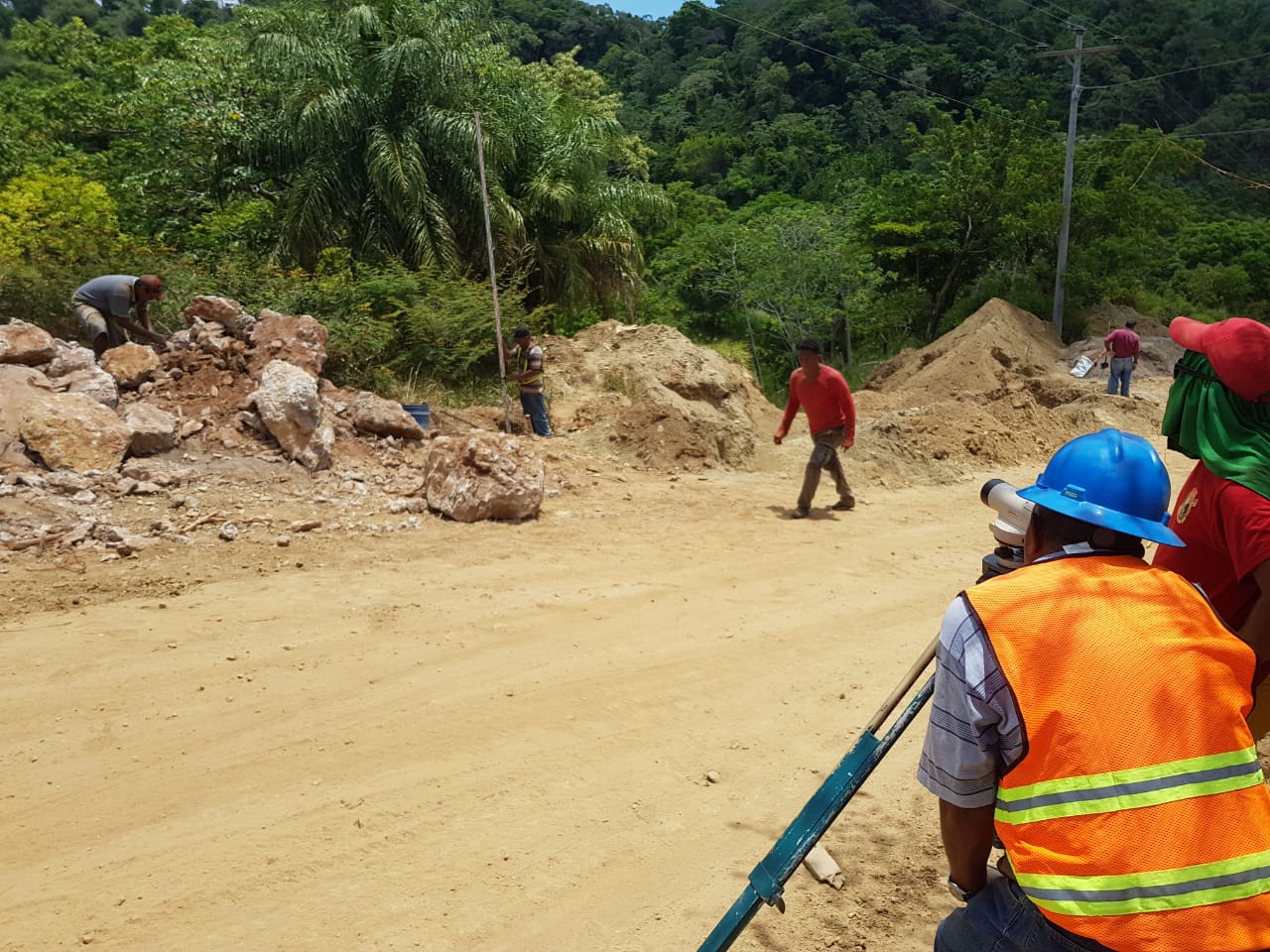 Avanza el proyecto “Pavimentación de Calle de Acceso al Nuevo Hospital de Roatán” con la escarificación con cal y compactación del terreno para la estabilización del mismo. Simultáneamente se está construyendo el muro de contención con el fin de evitar la socavación del terreno.