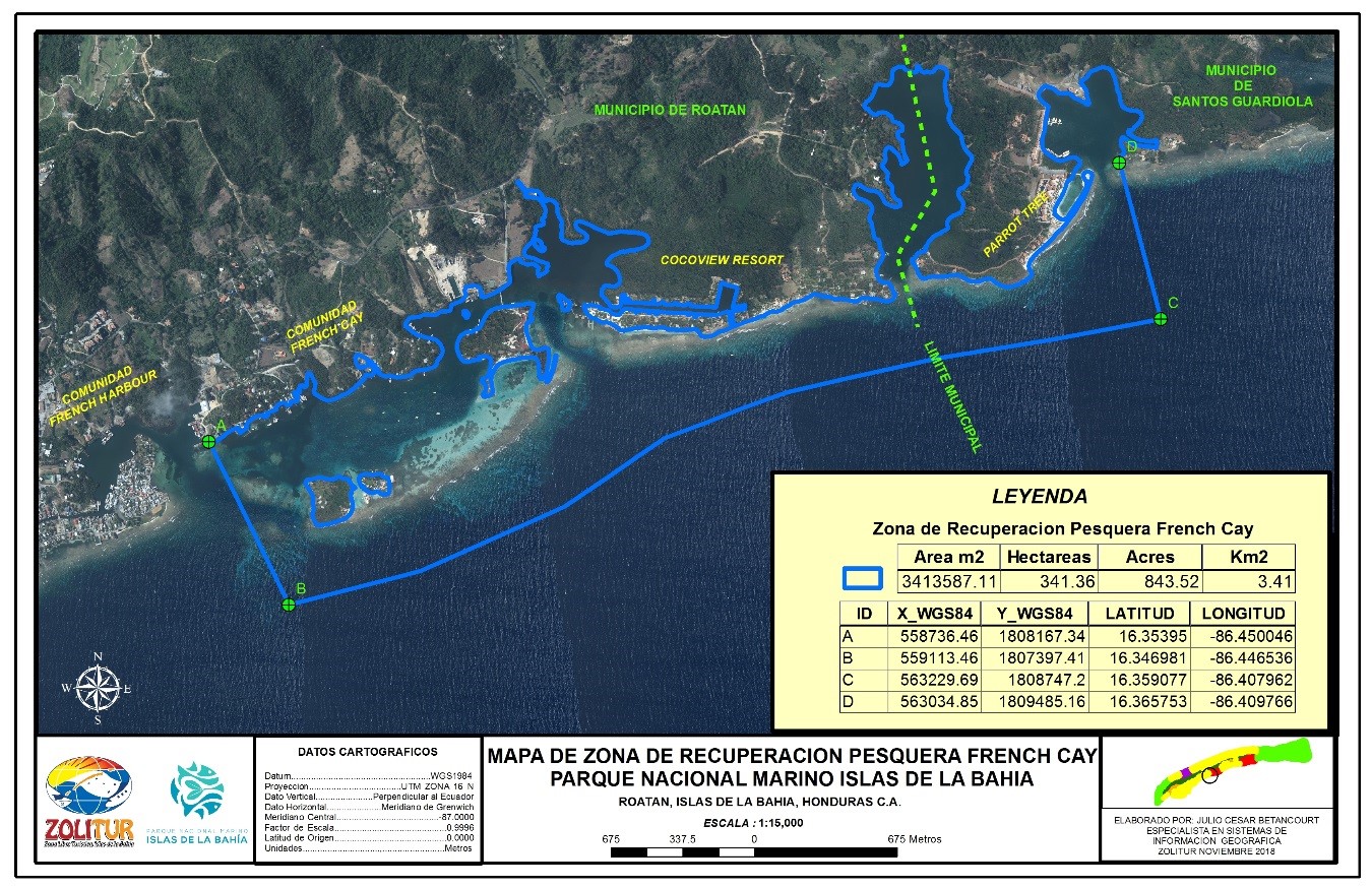 Esta iniciativa de protección del área nació de la comunidad de French Cay, hace algunos años, y se ha legalizado mediante el esfuerzo de la familia Arch, organizaciones co-manejadoras del Parque Nacional Marino Islas de la Bahía y el apoyo de las municipalidades de Roatán y Santos Guardiola.