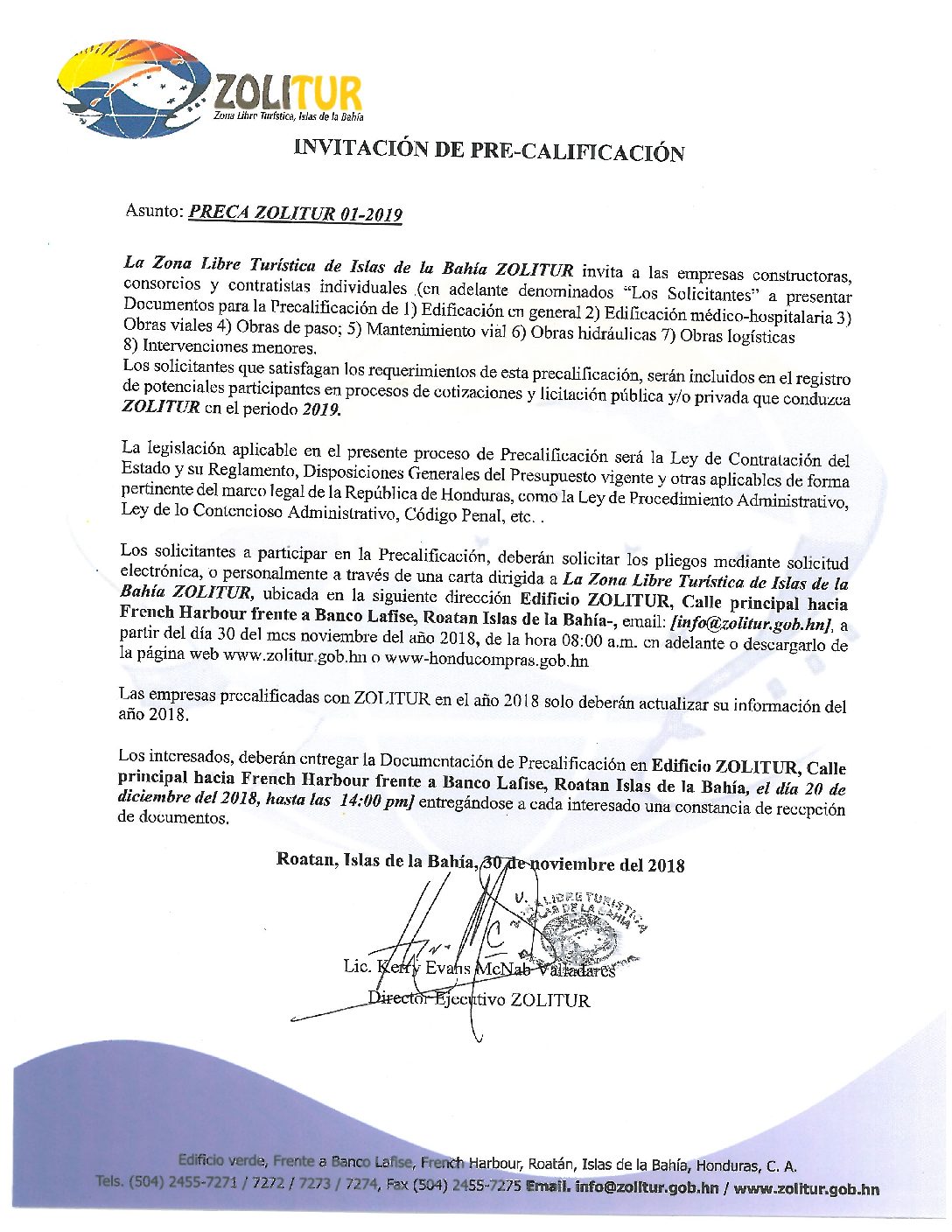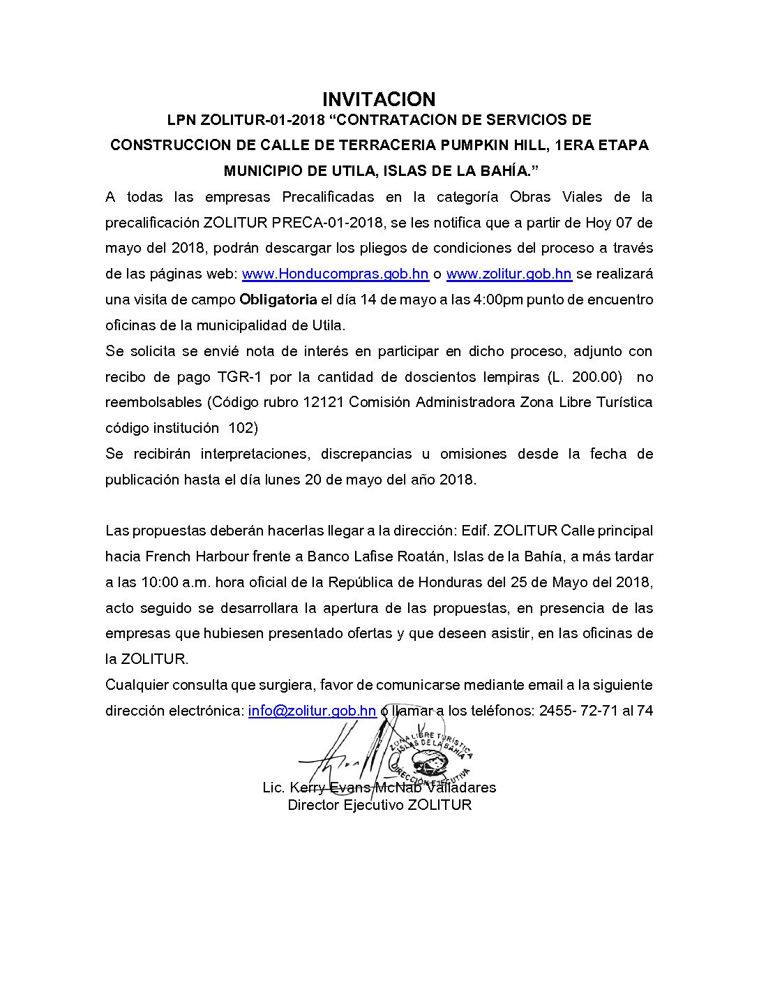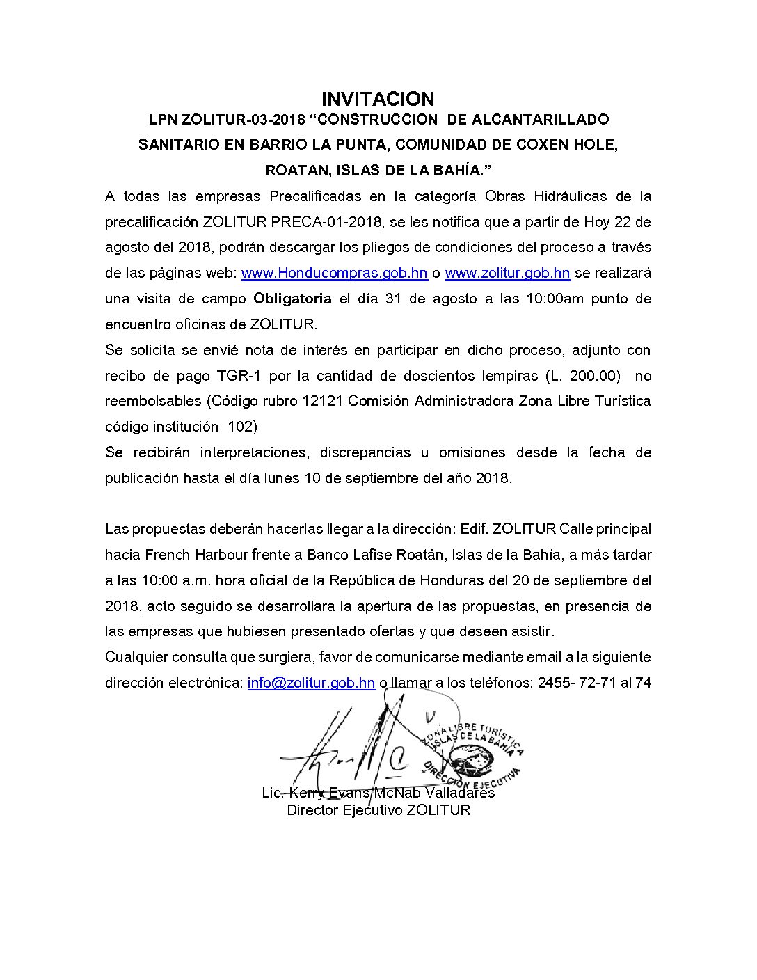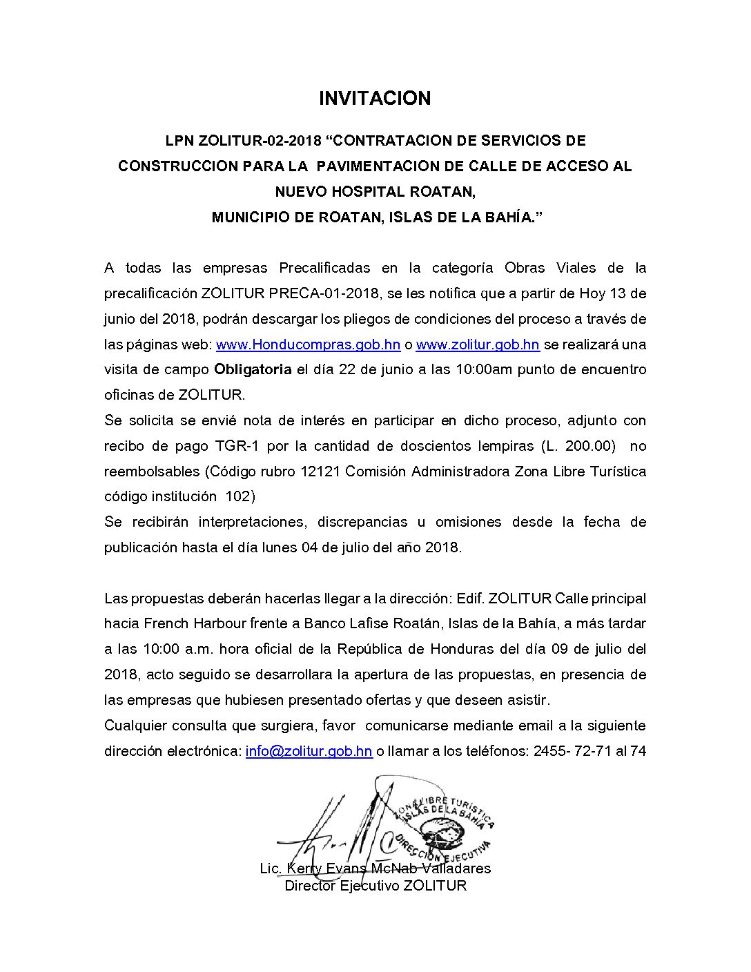 INVITACIÓN LPN 01 2018