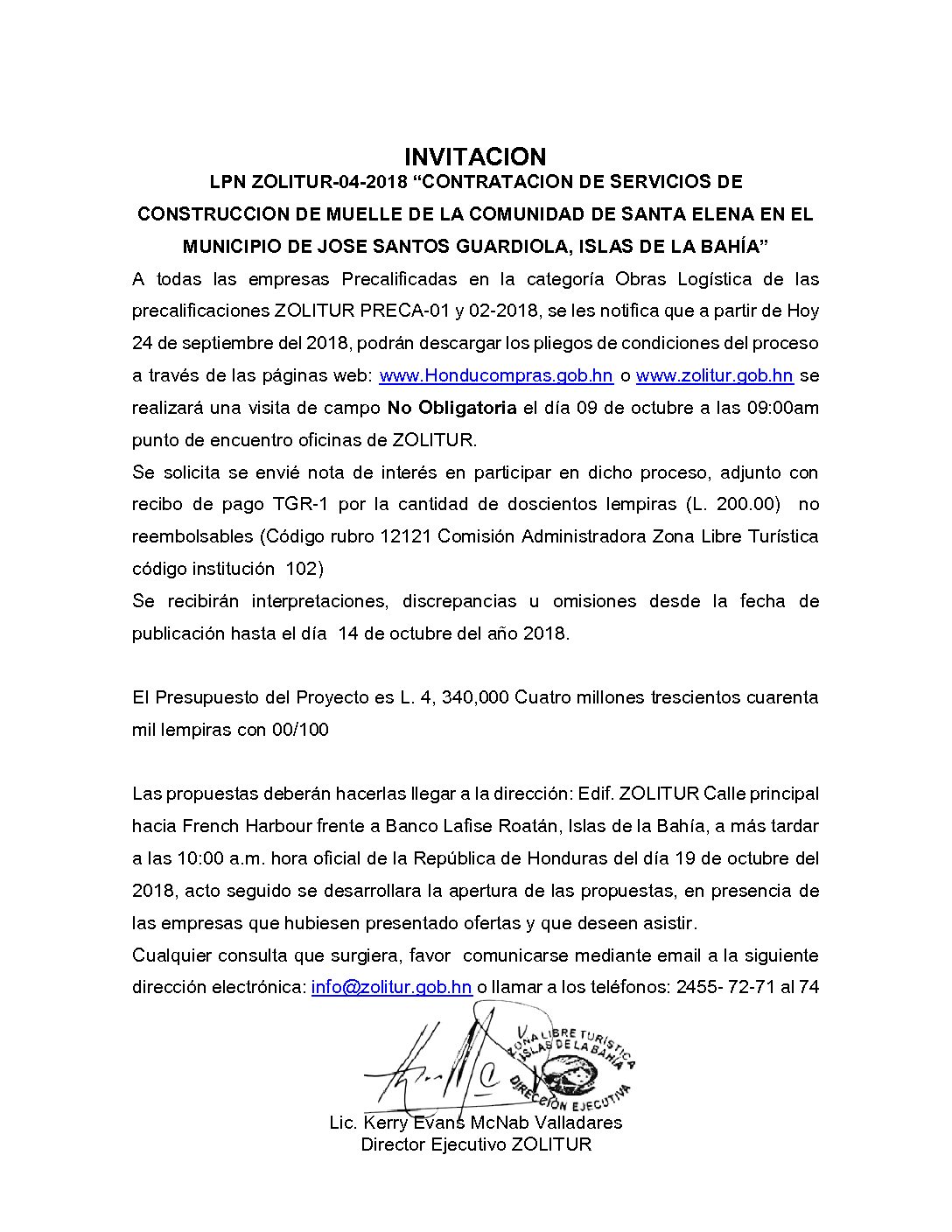 INVITACIÓN LPN 04 2018