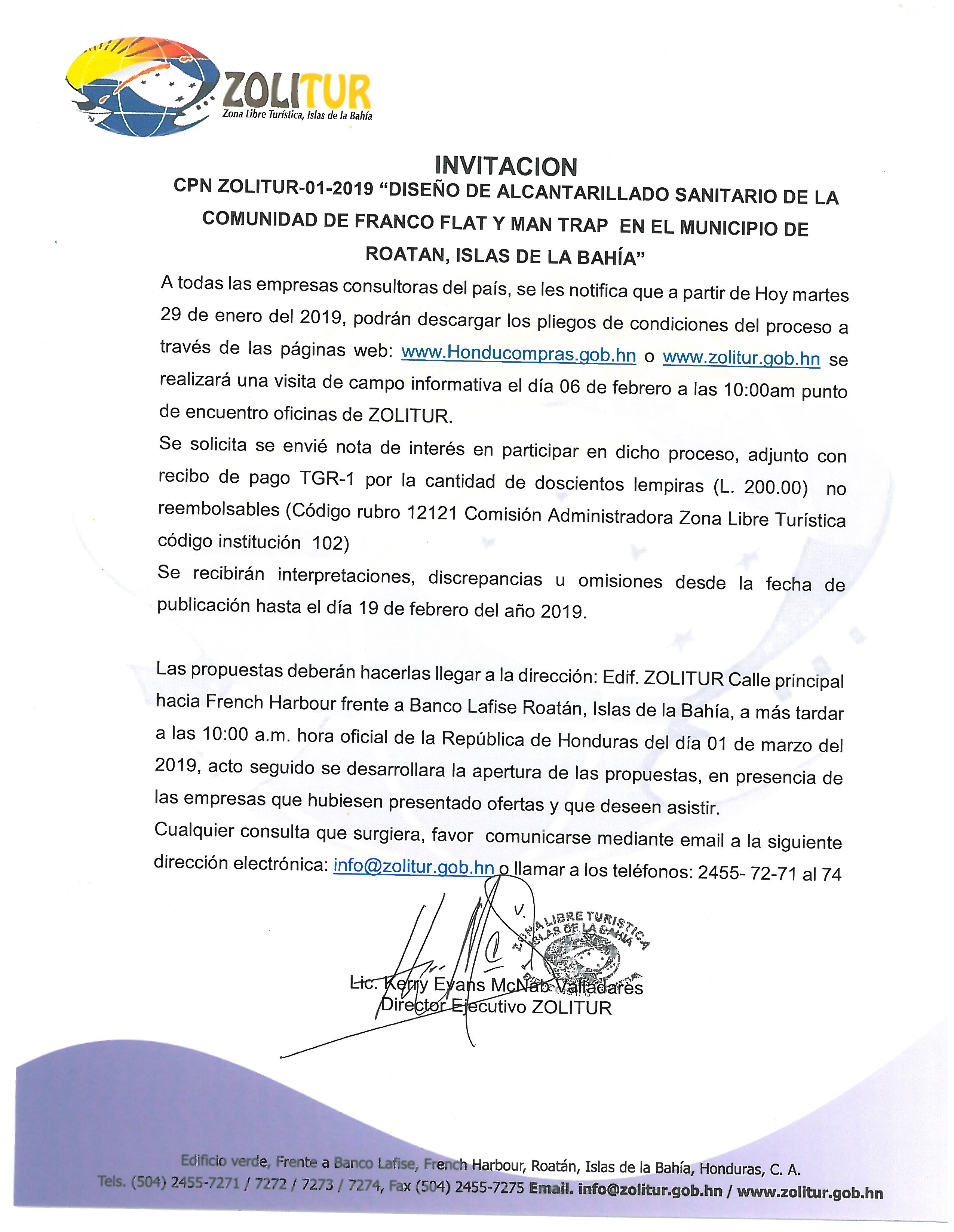 INVITACIÓN LPN 01 2019
