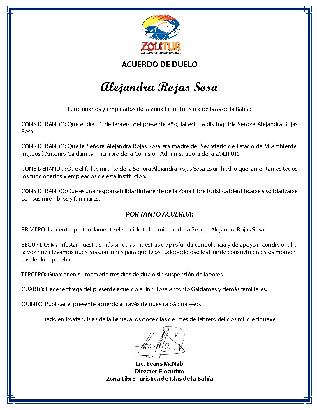Acuerdo de Duelo-Sra. Alejandra Rojas Sosa
