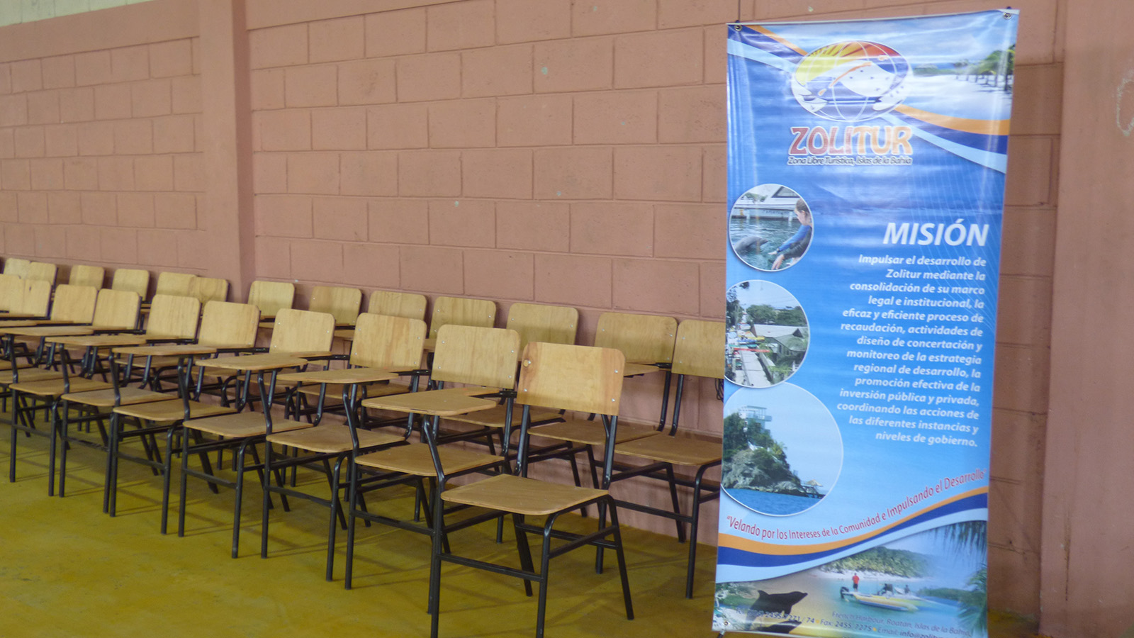 Con la presencia de Ricardo Merren (Gobernador Departamental),  Carson Dilbert (Alcalde de Santos Guardiola), Rita Morris (Cámara de Comercio de Islas de la Bahía), Rosa Danelia Hendrix (Federación de Patronatos) y Geovanni Suazo (Regidor, Municipalidad de Roatan) como miembros de la Comisión Administradora de la ZOLITUR y Máximo Castro Molina, Director Departamental de Educación, se hizo entrega al Instituto José Santos Guardiola de 100 pupitres para dicha Institución.